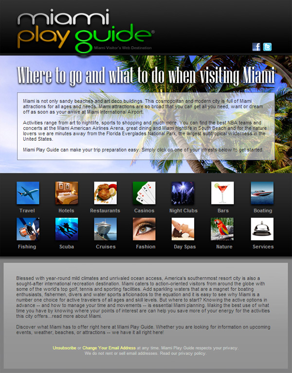 This email was designed as an email blast for Miami Play Guide.