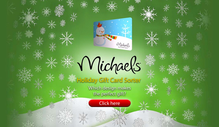 This is a landing page to help select holiday gift cards for Michaels Stores.